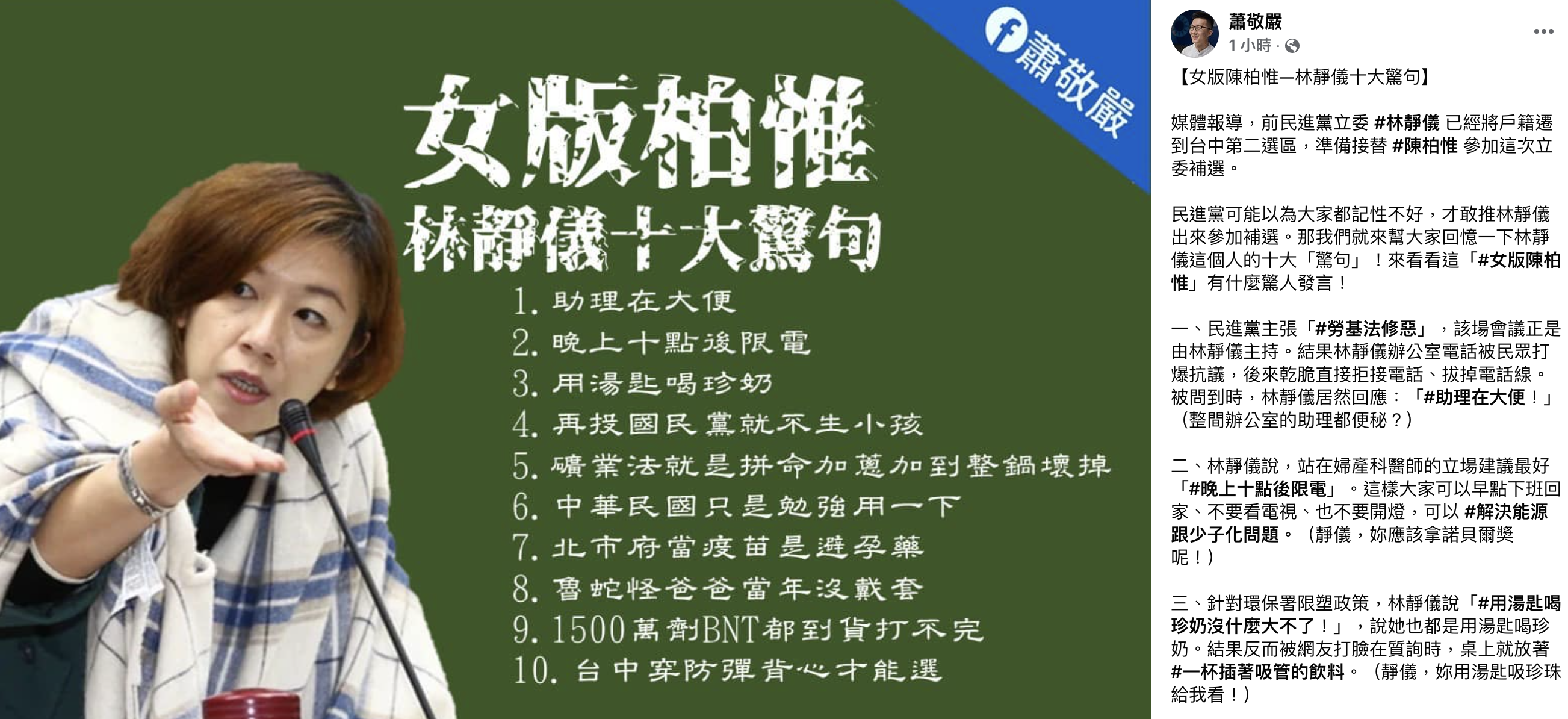 14 F 推 stevencool. 蕭敬嚴列出林靜儀曾說過助理在大便晚上10點後限電用湯匙喝珍奶再投國民黨就不生小孩礦業法就是拚命加蔥 首頁.